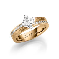 Trauring/Ehering von acredo in Roségold 585/- Oberfläche: gehämmert matt mit 0,5 ct. + zus. 0,54 ct. Prinzess-Diamant & Brillant tw, vs tw, si