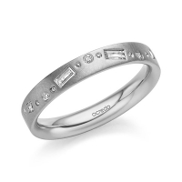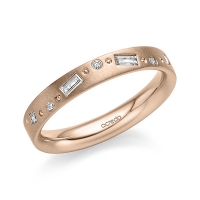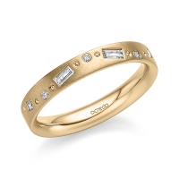 Trauring/Ehering von acredo in Signature Gold 585/- Oberfläche: eismatt fein mit zus. 0,19 ct. Baguette-Diamant & Prinzess-Diamant & Brillant tw, vs