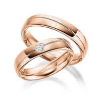 Paar Trauringe/Eheringe von acredo in außen Roségold 585/- , innen Graugold 585/- Oberfläche: poliert mit zus. 0,1 ct. Herz-Diamant tw, vs (Produkt 1 mit Steinbesatz, Produkt 2 ohne Steinbesatz)