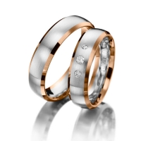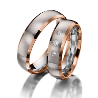 Paar Trauringe/Eheringe in Gelbgold 585/- Graugold 585/- Oberfläche: poliert, längsmatt mit zus. 0,08 ct. Brillant tw, si (Produkt 1 mit Steinbesatz, Produkt 2 ohne Steinbesatz)