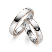 Paar Trauringe/Eheringe in Gelbgold 585/- Roségold 585/- Oberfläche: poliert mit zus. 0,08 ct. Brillant tw, si (Produkt 1 mit Steinbesatz, Produkt 2 ohne Steinbesatz)