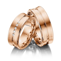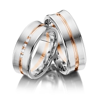 Paar Trauringe/Eheringe von Steinberg in Graugold 585/- Rotgold 585/- Oberfläche: längsmatt, poliert mit zus. 0,05 ct. Brillant tw, si (Produkt 1 mit Steinbesatz, Produkt 2 ohne Steinbesatz)