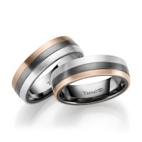 Paar Trauringe/Eheringe in Innen Tantal 900/- , außen Silber 925/- Tantal 900/- Rotgold 750/- Oberfläche: poliert, längsmatt