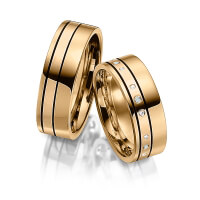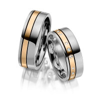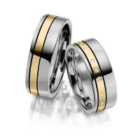 Paar Trauringe/Eheringe von Merii in Palladium 585/- Gelbgold 585/- Oberfläche: poliert mit zus. 0,06 ct. Brillant tw, vs iceblue (Produkt 1 mit Steinbesatz, Produkt 2 ohne Steinbesatz)