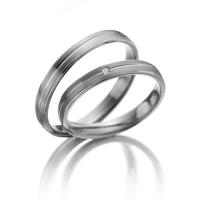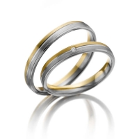 Paar Trauringe/Eheringe in Rotgold 375/- Weißgold 375/- Oberfläche: längsmatt mit zus. 0,01 ct. Brillant tw, si (Produkt 1 mit Steinbesatz, Produkt 2 ohne Steinbesatz)