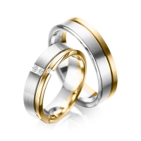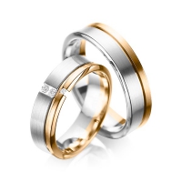 Paar Trauringe/Eheringe von acredo in Weißgold 585/- Gelbgold 585/- Oberfläche: längsmatt, poliert mit zus. 0,05 ct. Brillant tw, si (Produkt 1 mit Steinbesatz, Produkt 2 ohne Steinbesatz)