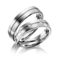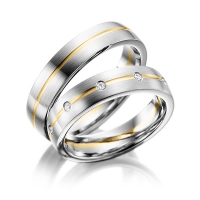Paar Trauringe/Eheringe von Steinberg in Weißgold 585/- Graugold 585/- Oberfläche: längsmatt, poliert mit zus. 0,2 ct. Brillant tw, si (Produkt 1 mit Steinbesatz, Produkt 2 ohne Steinbesatz)