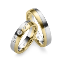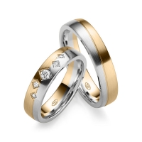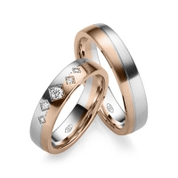 Paar Trauringe/Eheringe in Weißgold 585/- Rotgold 585/- Oberfläche: längsmatt mit zus. 0,116 ct. Brillant w, si (Produkt 1 mit Steinbesatz, Produkt 2 ohne Steinbesatz)
