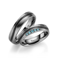 Paar Trauringe/Eheringe in Tantal 900/- Oberfläche: Wie Modell, längsmatt mit zus. 0,07 ct. Brillant iceblue (Produkt 1 mit Steinbesatz, Produkt 2 ohne Steinbesatz)