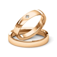 Paar Trauringe/Eheringe von Merii in Gelbgold 585/- Oberfläche: poliert mit zus. 0,025 ct. Brillant tw, si (Produkt 1 mit Steinbesatz, Produkt 2 ohne Steinbesatz)