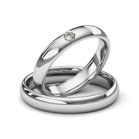 Paar Trauringe/Eheringe von Merii in Graugold 585/- Oberfläche: poliert mit zus. 0,06 ct. Brillant tw, si (Produkt 1 mit Steinbesatz, Produkt 2 ohne Steinbesatz)