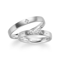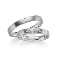 Paar Trauringe/Eheringe von acredo in Graugold 585/- Oberfläche: längsmatt mit zus. 0,081 ct. Brillant & Prinzess-Diamant tw, si