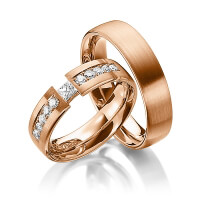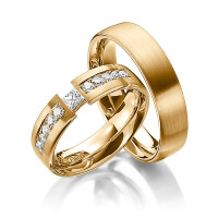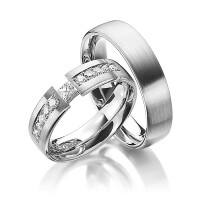 Paar Trauringe/Eheringe von Steinberg in Graugold 585/- Oberfläche: längsmatt mit zus. 0,3 ct. Prinzess-Diamant & Brillant tw, si (Produkt 1 mit Steinbesatz, Produkt 2 ohne Steinbesatz)