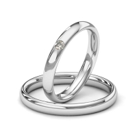 Paar Trauringe/Eheringe von Merii in Palladium 585/- Oberfläche: poliert mit zus. 0,05 ct. Brillant tw, si (Produkt 1 mit Steinbesatz, Produkt 2 ohne Steinbesatz)