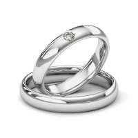 Paar Trauringe/Eheringe von Merii in Palladium 585/- Oberfläche: poliert mit zus. 0,06 ct. Brillant tw, si (Produkt 1 mit Steinbesatz, Produkt 2 ohne Steinbesatz)