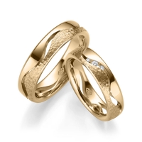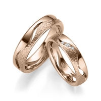 Paar Trauringe/Eheringe von Merii in Roségold 585/- Oberfläche: poliert, gehämmert poliert mit zus. 0,036 ct. Brillant tw, si (Produkt 1 mit Steinbesatz, Produkt 2 ohne Steinbesatz)