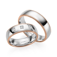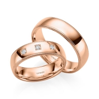 Paar Trauringe/Eheringe von acredo in Roségold 585/- Oberfläche: poliert mit zus. 0,09 ct. Brillant tw, si (Produkt 1 mit Steinbesatz, Produkt 2 ohne Steinbesatz)