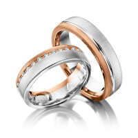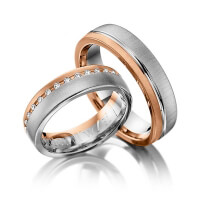 Paar Trauringe/Eheringe von 123GOLD in Rotgold 585/- Oberfläche: quermatt mit zus. 0,15 ct. Brillant tw, si (Produkt 1 mit Steinbesatz, Produkt 2 ohne Steinbesatz)