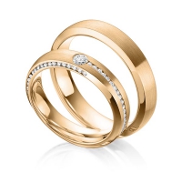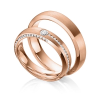 Paar Trauringe/Eheringe von Steinberg in Rotgold 585/- Oberfläche: längsmatt mit zus. 0,39 ct. Brillant tw, si (Produkt 1 mit Steinbesatz, Produkt 2 ohne Steinbesatz)