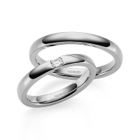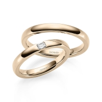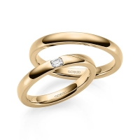 Paar Trauringe/Eheringe von acredo in Signature Gold 585/- Oberfläche: poliert mit zus. 0,1 ct. tw, vs (Produkt 1 mit Steinbesatz, Produkt 2 ohne Steinbesatz)