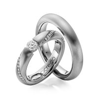 Paar Trauringe/Eheringe von acredo in Weißgold 585/- Oberfläche: längsmatt mit 0,3 ct. + zus. 0,225 ct. Brillant tw, si (Produkt 1 mit Steinbesatz, Produkt 2 ohne Steinbesatz)
