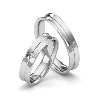 Paar Trauringe/Eheringe von Merii in Weißgold 585/- Oberfläche: poliert mit zus. 0,025 ct. Brillant tw, si (Produkt 1 mit Steinbesatz, Produkt 2 ohne Steinbesatz)
