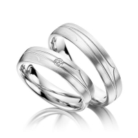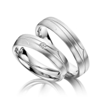Paar Trauringe/Eheringe von Steinberg in Weißgold 585/- Oberfläche: Wie Modell mit zus. 0,04 ct. Brillant tw, si (Produkt 1 mit Steinbesatz, Produkt 2 ohne Steinbesatz)