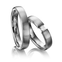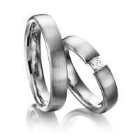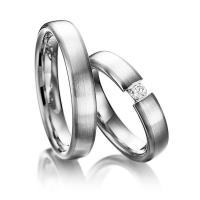 Paar Trauringe/Eheringe von 123GOLD in Weißgold 585/- Oberfläche: längsmatt mit zus. 0,1 ct. Brillant tw, si (Produkt 1 mit Steinbesatz, Produkt 2 ohne Steinbesatz)