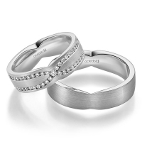 Paar Trauringe/Eheringe von acredo in Weißgold 585/- Oberfläche: längsmatt mit zus. 0,46 ct. Brillant tw, si (Produkt 1 mit Steinbesatz, Produkt 2 ohne Steinbesatz)